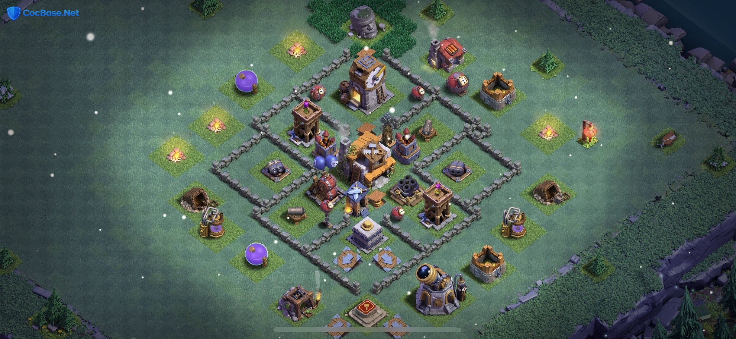 For Builder Hall 5 players seeking to elevate their defensive game, this carefully crafted base layout is a valuable asset. By cleverly utilizing the limited space available at BH5, the design expertly funnels and traps incoming troops, making it a nightmare for opponents to breach. The strategic placement of key defenses, such as the Double Cannon and Archer Tower, creates a formidable barrier against even the most determined attackers.