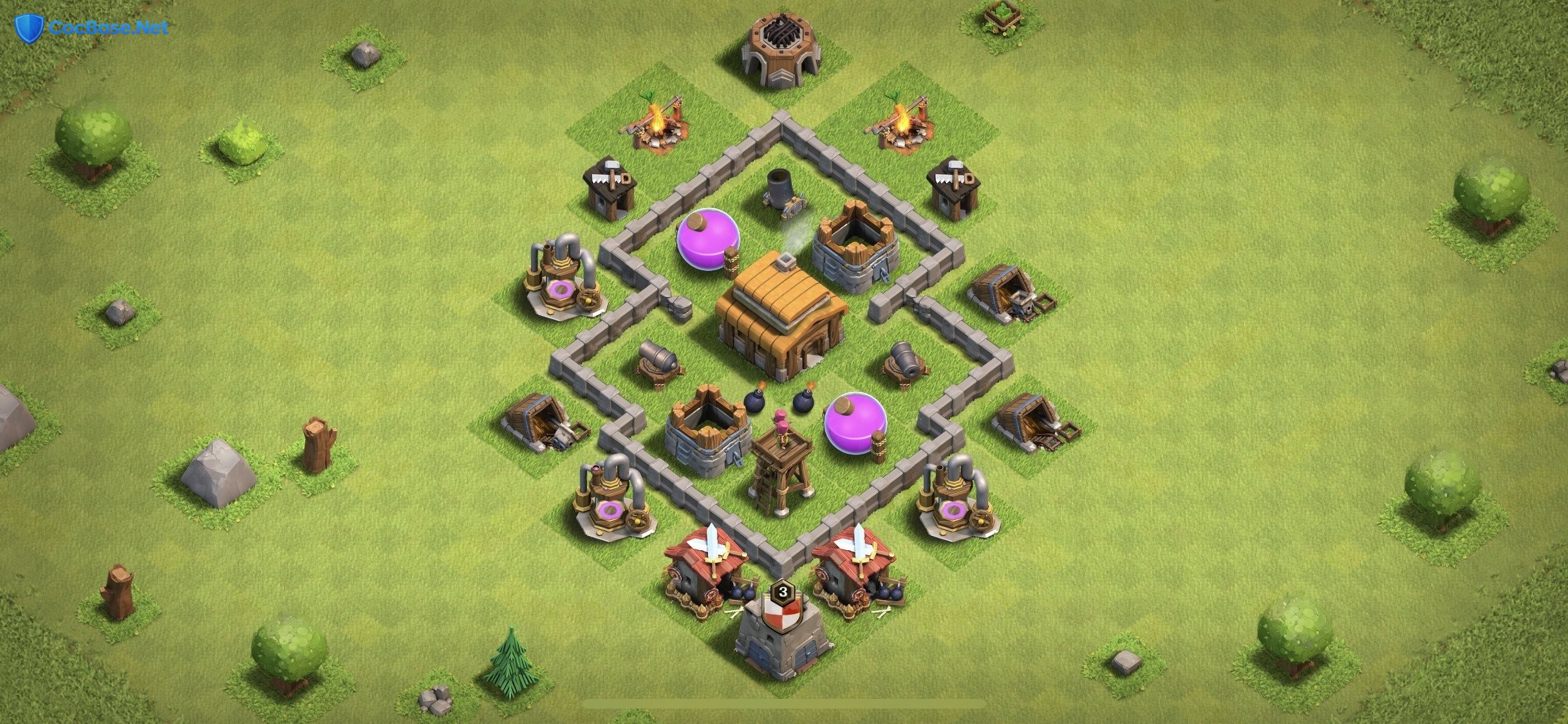 For Town Hall 3 players, finding the right balance between defense and progression can be a challenge, but this carefully crafted Defense base layout is here to change the game. By cleverly positioning defensive buildings and resource storages, it creates a formidable barrier against would-be attackers. This TH3 base is specifically designed to protect your Gold, Elixir, and Dark Elixir from opportunistic raids.