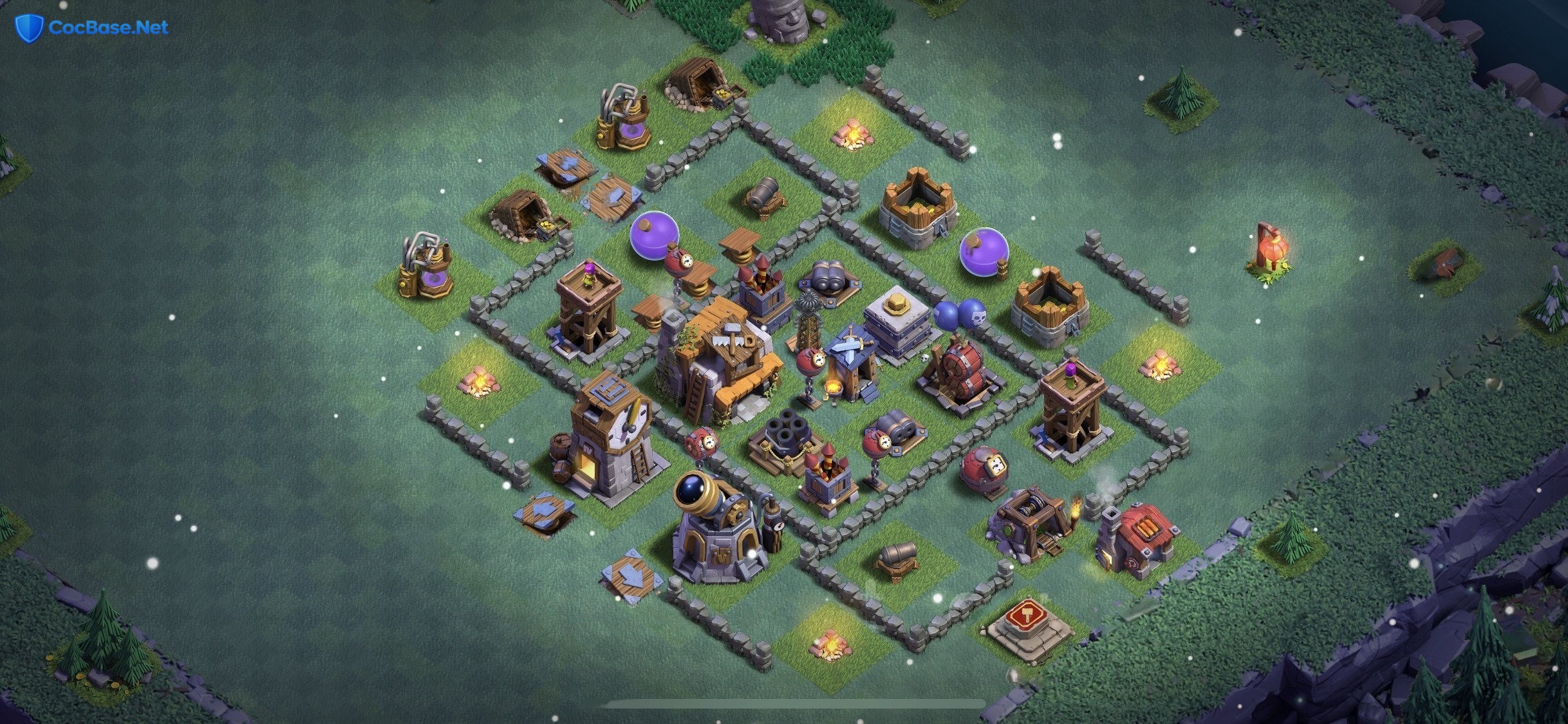 For players seeking to maximize their defensive potential at Builder Hall 5, this expertly crafted base layout is a game-changer. By cleverly utilizing the unique characteristics of BH5 defenses, it creates a tight and responsive defensive core that is highly resistant to the most common attack strategies. Whether you're focused on trophy pushing or resource protection, this base has been carefully designed to meet your needs.