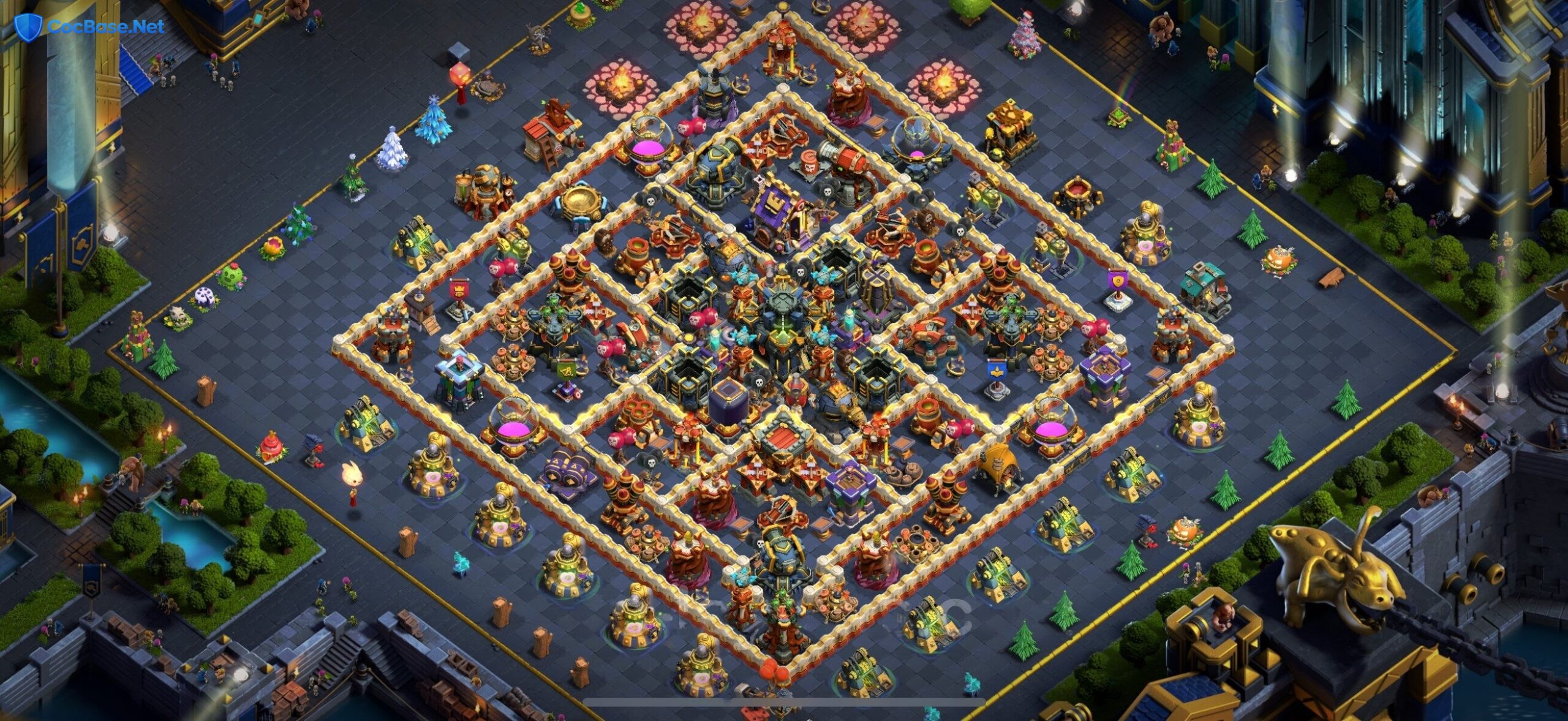 Town Hall 17 players seeking to maximize their defensive capabilities will find this expertly crafted Defense base layout to be a game-changer in protecting their village from would-be attackers. By incorporating a unique blend of traps and defensive buildings, it creates a formidable barrier that even the most seasoned opponents will struggle to breach. This base is specifically designed to safeguard resources and trophies in the highly competitive world of Clash of Clans.