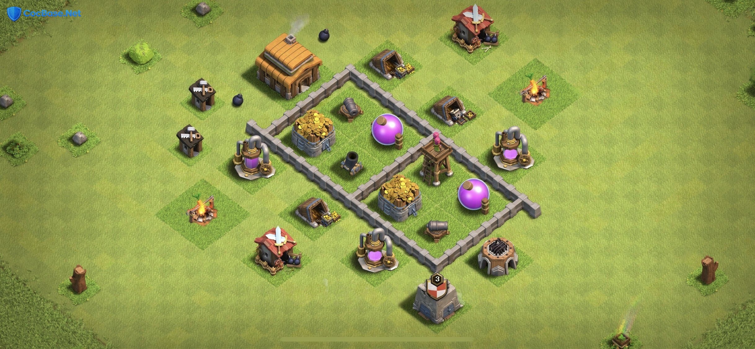 For Town Hall 3 players, finding the right balance between defense and resource production is key to advancing through the game. This Farming base layout is designed to maximize your resource output while protecting your Gold Mines, Elixir Collectors, and Dark Elixir Drills from would-be thieves. By centralizing your Town Hall and surrounding it with a layer of defensive buildings, you create a safe haven for your resources to accumulate.