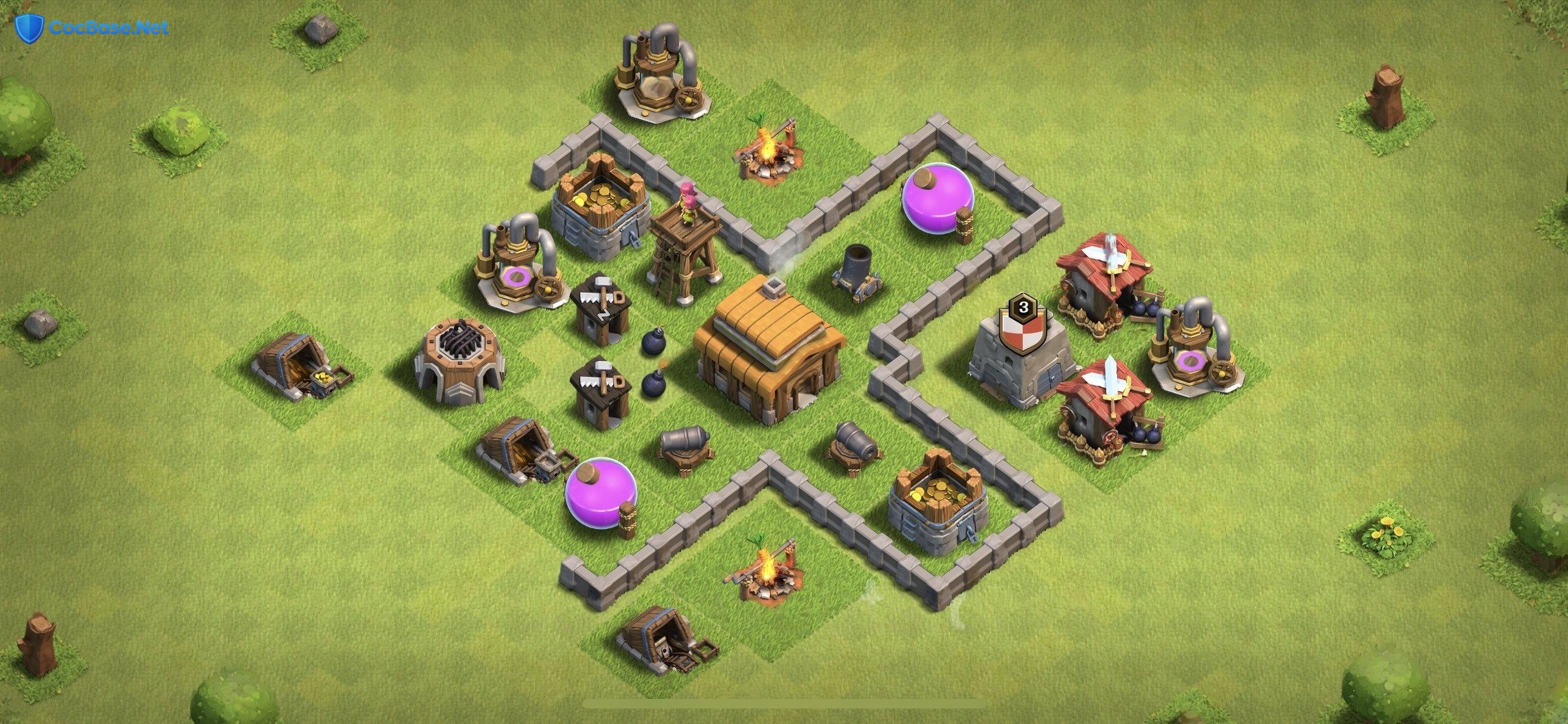 For Town Hall 3 players seeking a reliable Defense base that can withstand the test of time, this strategically crafted layout is the perfect solution. By cleverly positioning defensive buildings and resource storages, it creates a formidable barrier against would-be attackers. This TH3 base is designed to maximize defensive capabilities, ensuring that your village remains secure and your resources are protected.