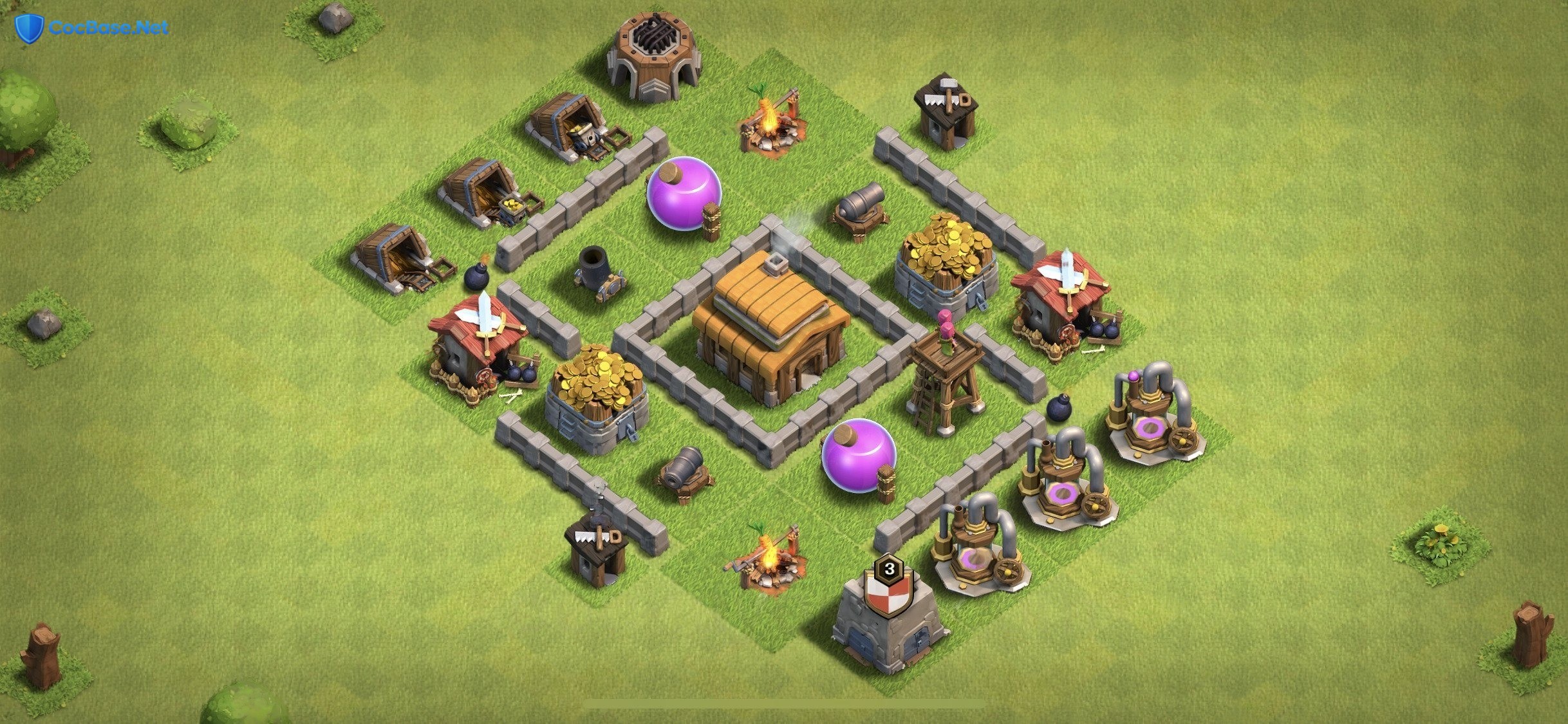 Overall, this TH3 Defense base layout offers a unique blend of defensive capabilities that will help you protect your village from a variety of attack strategies. With its well-planned defensive synergy, this base is an excellent choice for players looking to improve their defensive game and climb the ranks. Whether you're a seasoned player or just starting out, this base layout is sure to provide a solid foundation for your Town Hall 3 village.